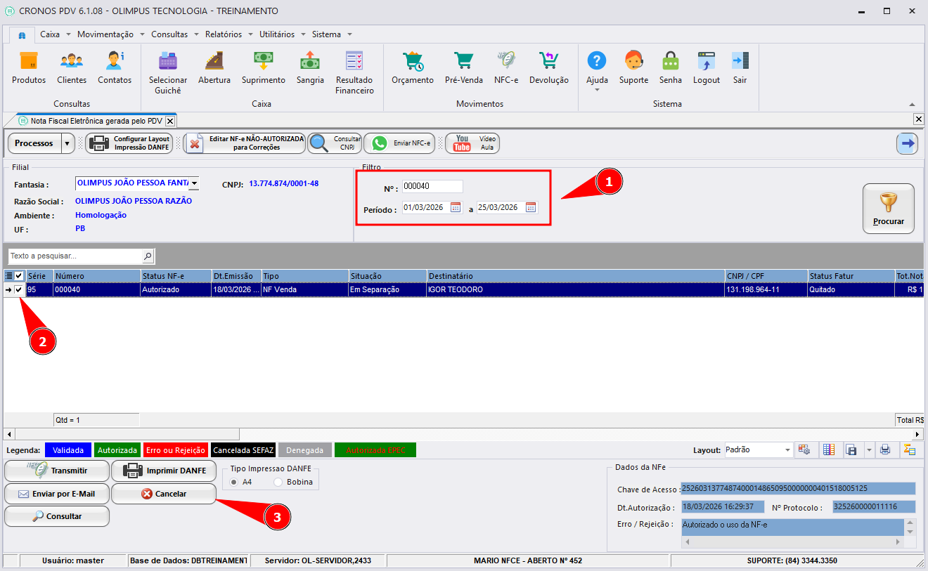 1. Utilize os filtros disponíveis na tela para facilitar a busca da nota a ser cancelada