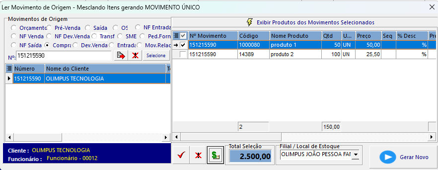 2. Alternativamente: acesse pelo menu Anexos > Ler Movimento de Origem - Mesclando Itens.