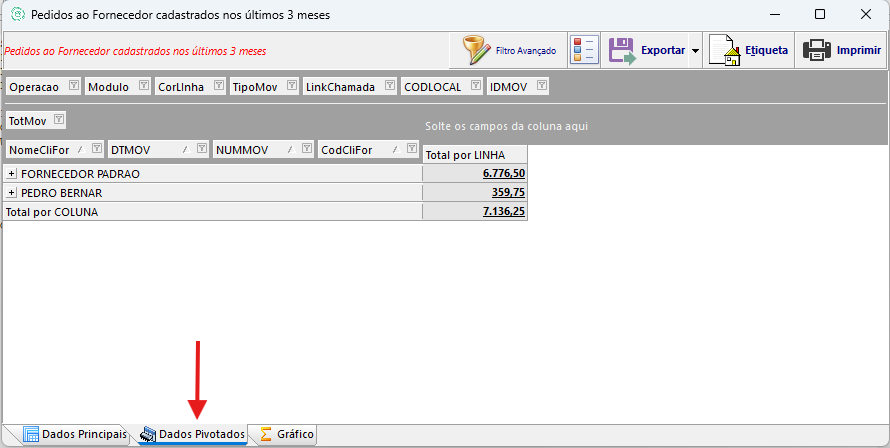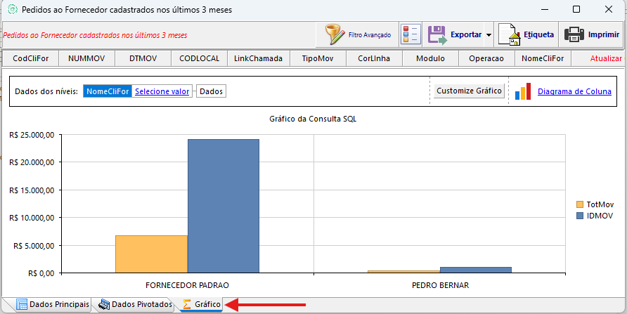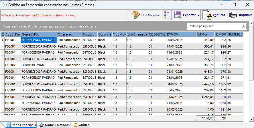 🧠 Exemplo prático: Pedidos ao Fornecedor nos últimos 3 meses